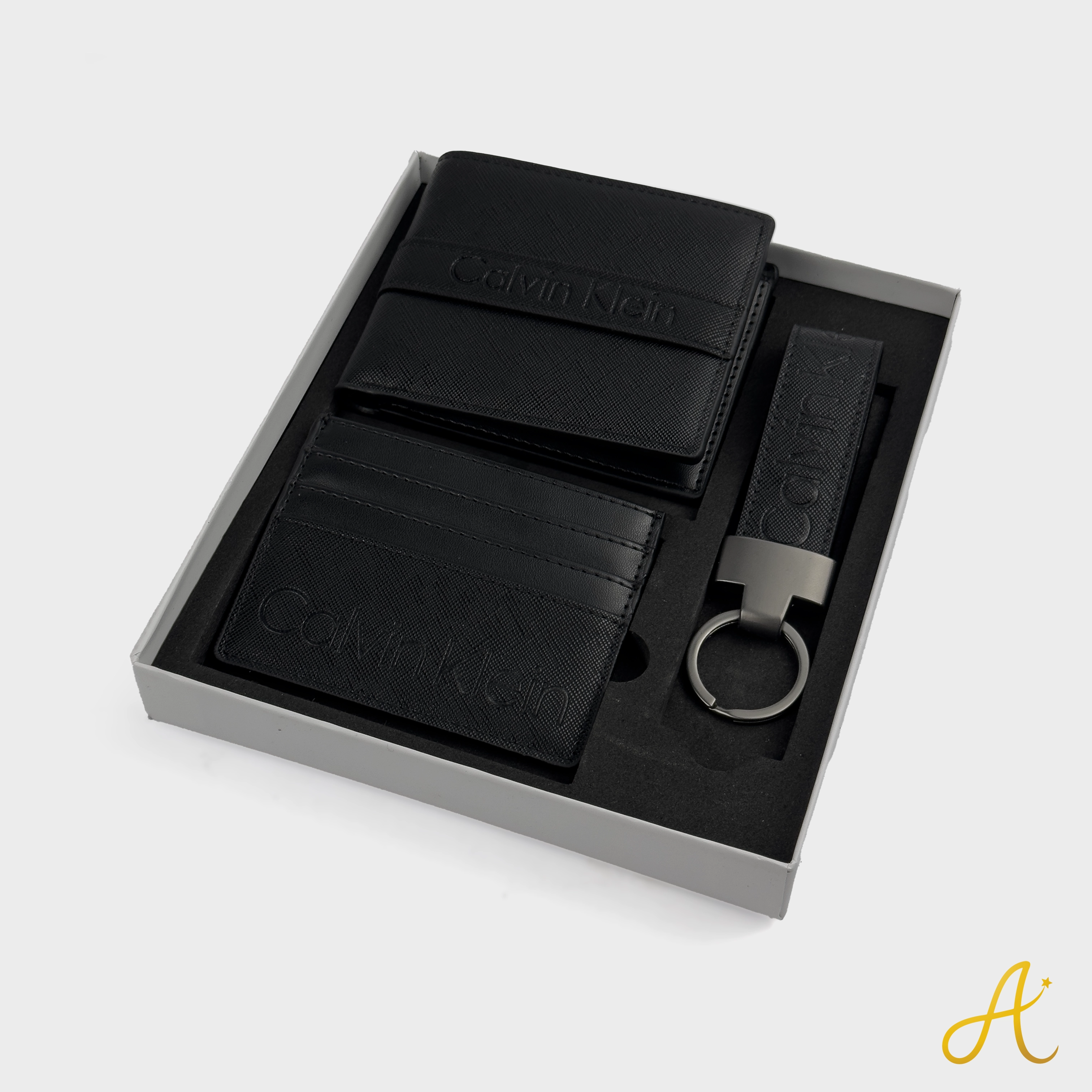 Calvin Klein 3-Piece Gift Set: Wallet, Card Holder & Keychain - Black