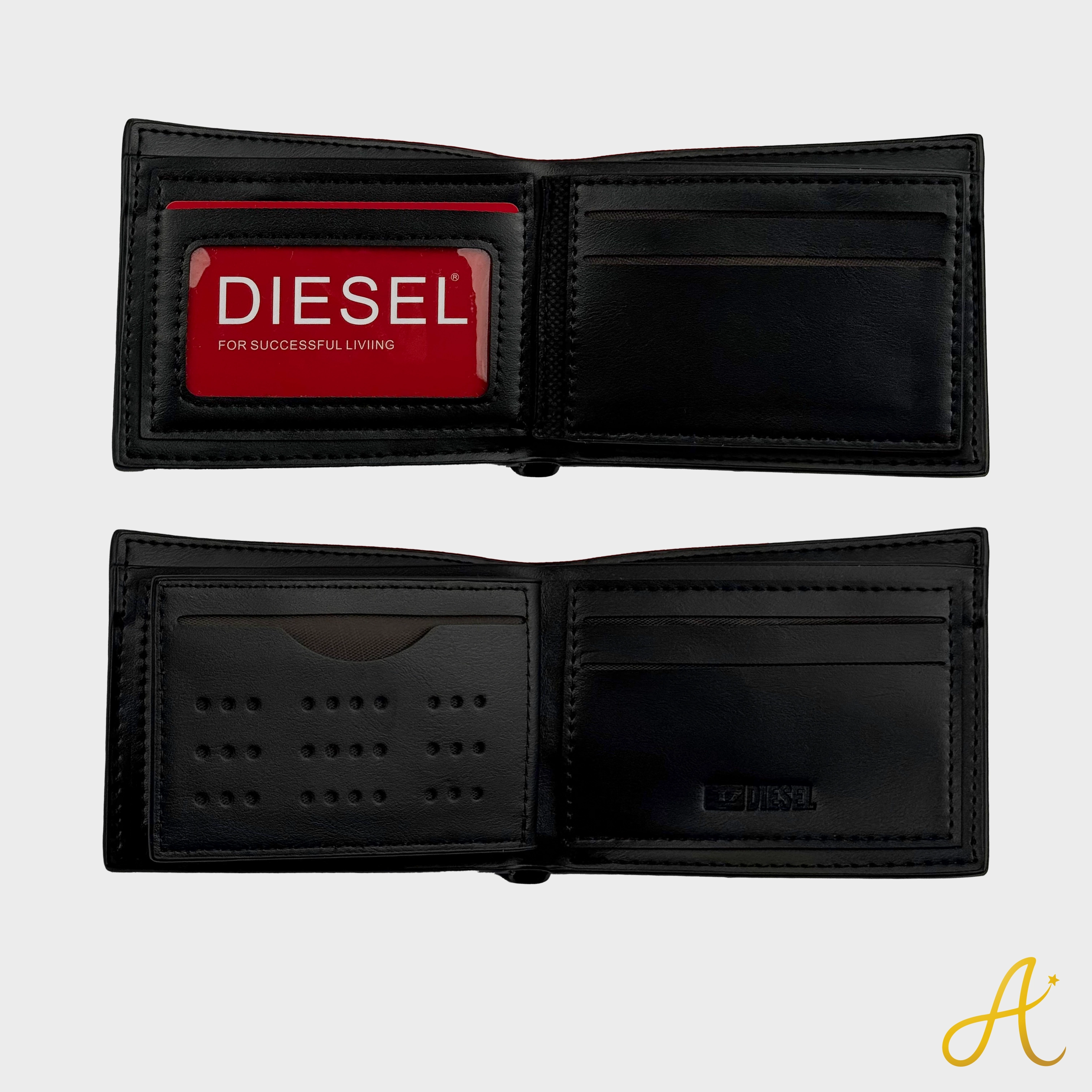 Diesel men leather wallet. Classic bifold wallet with card holder, premium materials and elegant design for everyday style.